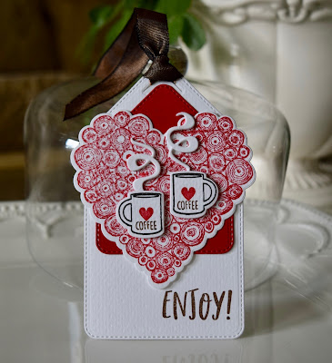 Thrilled to have another Tag You're It alumni joining us as our Featured Artist. Lynn Put, The Queen Scene, created an adorable cocoa themed tag for us. Lynn is currently on the Design Team for The Color Throwdown and Where Creativity Meets C9. If you head over to Lynn's blog to take a look you should grab a cup of cocoa because you will be there for a while checking out her fabulous layered designs and amazing use of colour. Thank you Lynn for the inspiration!